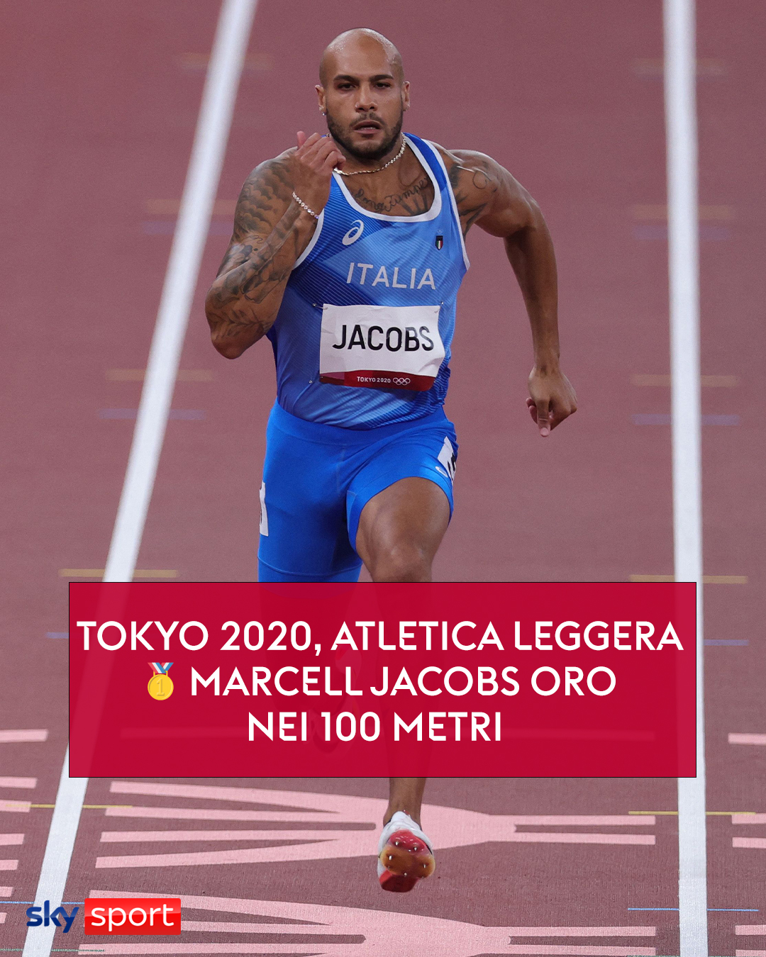 La seconda è valida e arriva un'oro storico, una corsa incredibile a 9″80 il tempo ufficiale di marcell jacobs.